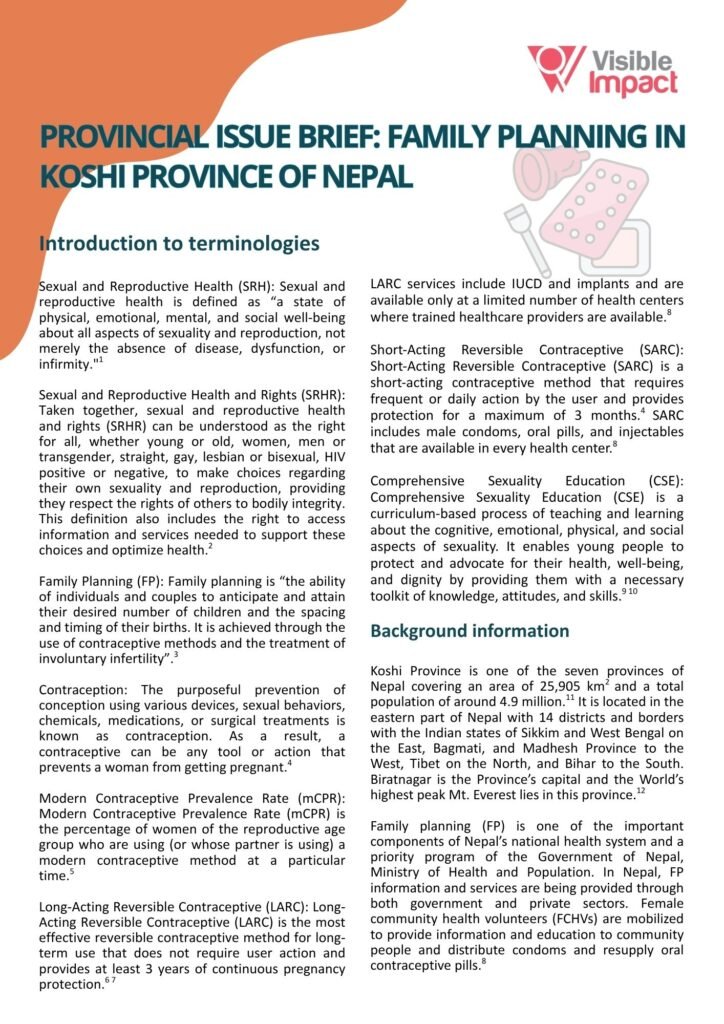 Provincial Issue Brief: Family Planning in Koshi Province in Nepal