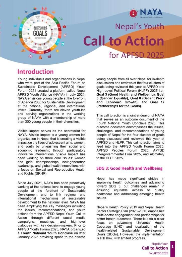 This call to action is a joint endeavor of NAYA that serves as an outcome document of the Fourth National Youth Conclave 2025. This outcome document encompasses the issues, challenges, and recommendations of young people of Nepal for the four clusters of goals being discussed and reviewed this year at APFSD and HLPF. This call […]